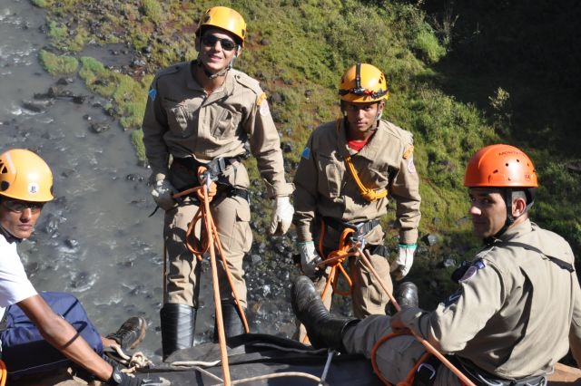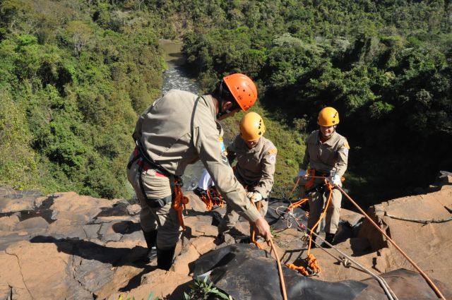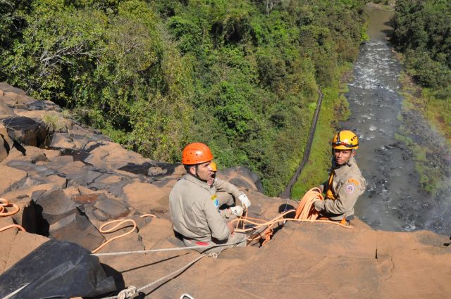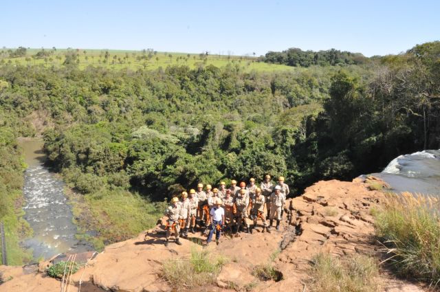 Os militares do Corpo de Bombeiros realizaram treinamentos com o uso de rapel nas cachoeiras do rio