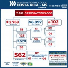 Seis pessoas de Costa Rica estão internadas em leito de UTI – Unidade de Terapia Intensiva em Costa Rica - sendo 04 residentes e 02 residente internados na UTI em Goiânia – GO. Há ainda seis pessoas internadas em UTI na fundação hospitalar, moradoras de outros municípios.