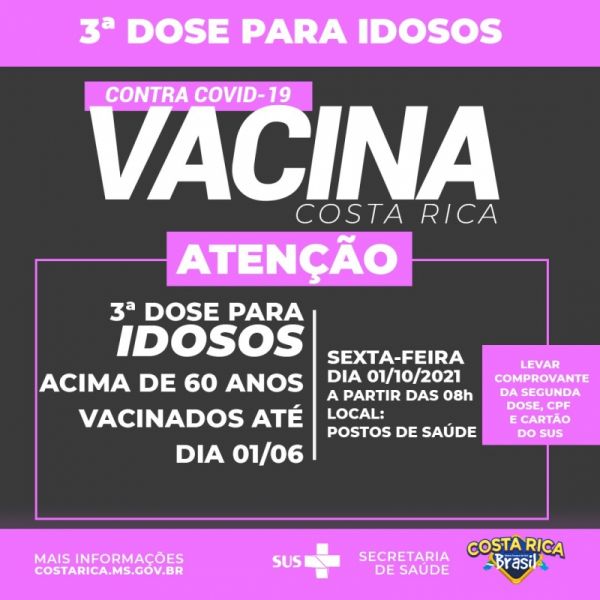 Idosos de 60 anos acima vacinados até 1º de junho tomam 3ª dose nesta sexta-feira