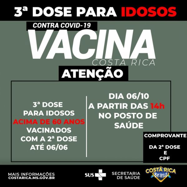 Vacinados até 28 de maio, com mais de 65 anos, tomam 3ª dose nesta terça-feira