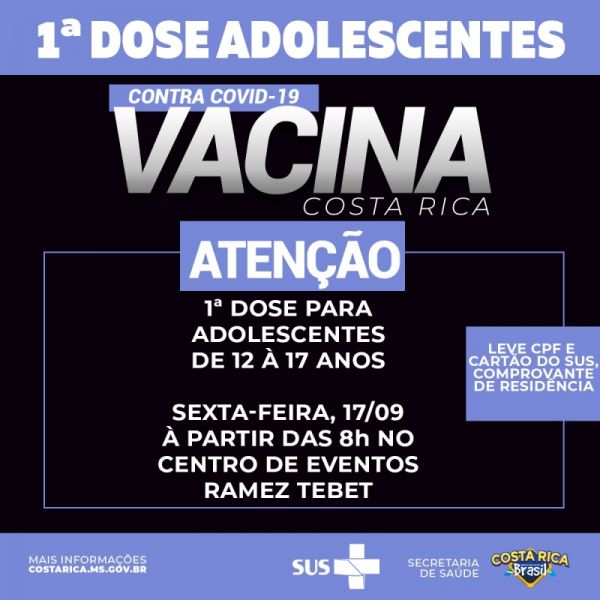 Adolescentes de 12 a 17 anos tomam 1ª dose contra Covid-19 nesta sexta no Ramez Tebet