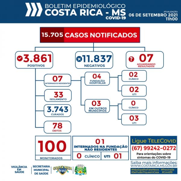 Boletim Epidemiológico: Costa Rica chega aos 3.854 casos confirmados do novo Coronavírus nesta segunda-feira (06)