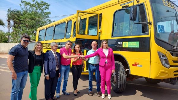 Pá carregadeira, caminhão e ônibus são entregues para Secretarias de Obras e Educação