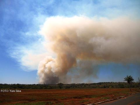 Canavial está tomado pelo fogo na região da Laje