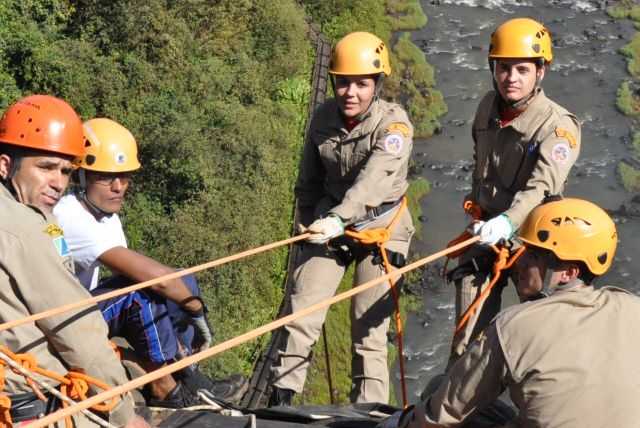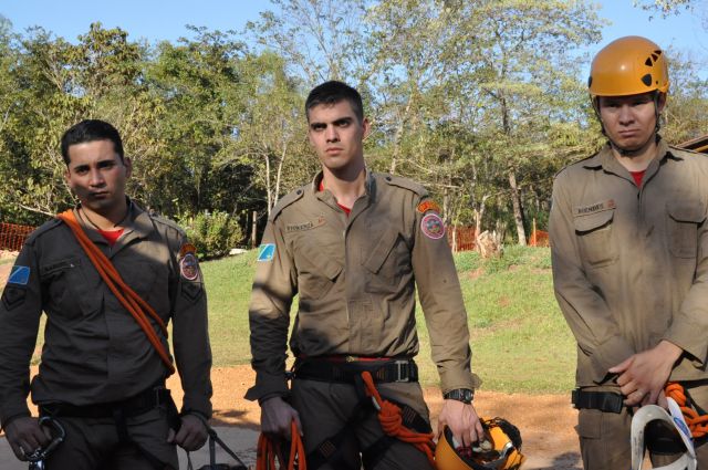 Os militares do Corpo de Bombeiros realizaram treinamentos com o uso de rapel nas cachoeiras do rio