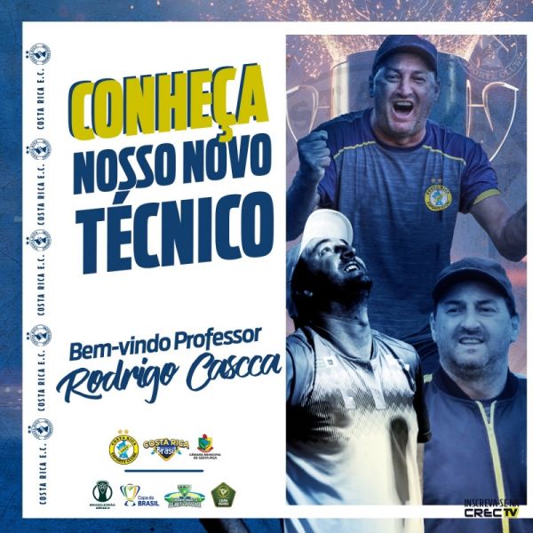 O Costa Rica Esporte Clube, CREC, anunciou nesta quinta-feira (26) o nome do seu novo treinador para a temporada 2024. O bicampeão Rodrigo Cascca foi escolhido para comandar a equipe, que é atual campeã sul-mato-grossense. O anúncio foi feito pelas redes sociais do clube, que afirmou que o novo contratado já está à disposição para a organização da próxima temporada.