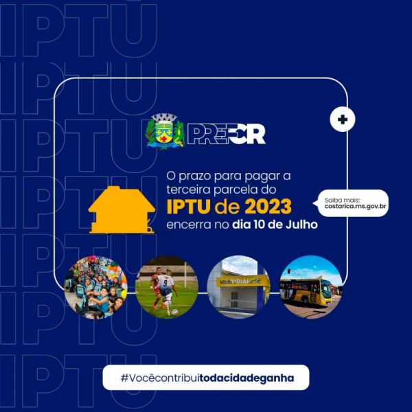 Prazo para pagar 3ª parcela do IPTU 2023 termina dia 10 de julho