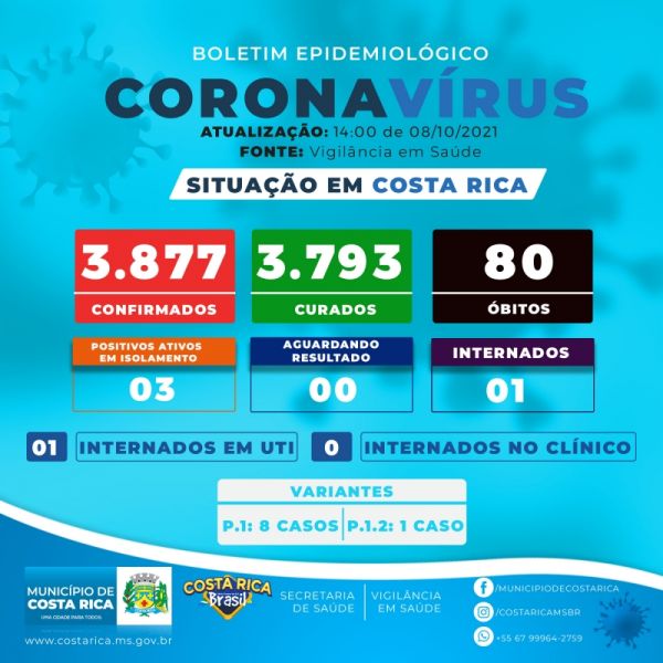 Boletim Epidemiológico: Costa Rica tem 3.791 pessoas curadas de Covid-19 e apenas duas internadas