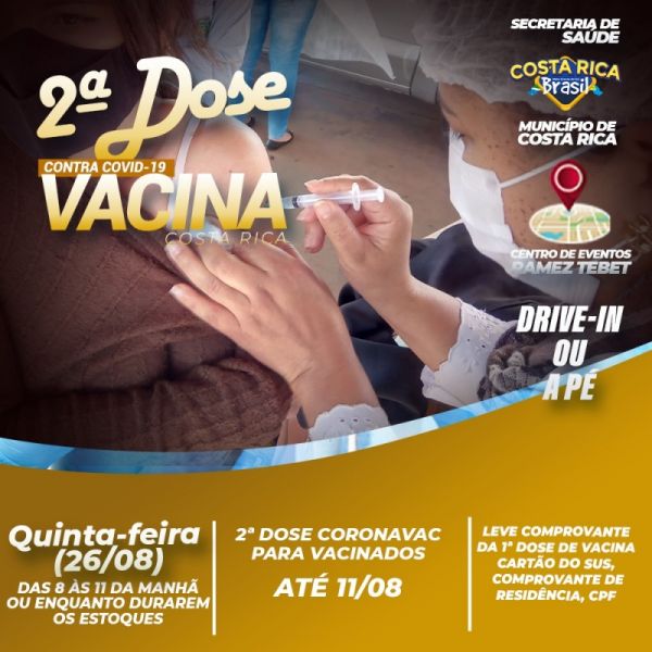 Vacinados com Coronavac até 13 de agosto tomam 2ª dose neste domingo
