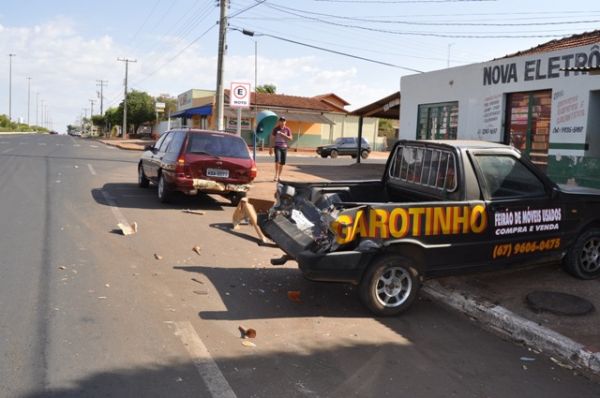 Acidente envolvendo carro e moto deixou danos materias nos veículos