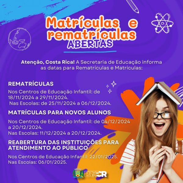 SEMED de Costa Rica anuncia datas para rematrículas e matrículas na Rede Municipal de Ensino para 2025